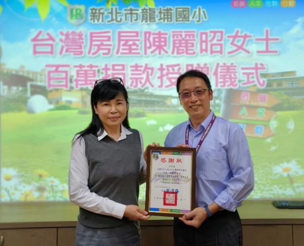 本次捐贈新台幣100萬給與龍埔國小學童獎助金(含弱勢學童)、學校辦理教育活動…等項目,由三峽區龍埔國民小學校長黃清海及家長會長任開煜代表接受,一方面藉此鼓勵所有學童能夠積極進取,且不斷拓展自身學習經驗,進而展現獨特的天賦能量,給予更多前進的力量,另一方面也期待能減輕家長及學校的負擔。
