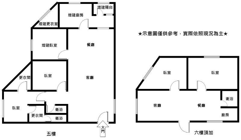 4.頂樓違建加蓋、可利用坪數超大、5房格局