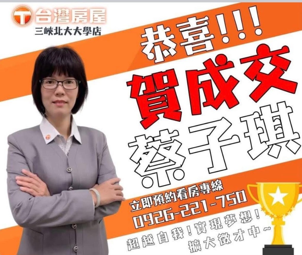 台灣房屋 - 三峽北大大學特許加盟店 (北大悠悅團隊),深耕北大特區,提供豐富的房屋、土地物件與專業房產服務。團隊成員具備豐富經驗,多位百萬經紀人與資深店長親切服務,專注於北大特區及鶯歌區域的買賣與租賃,期待您的加入,成為我們團隊的一員,共創佳績!「陳麗昭榮獲2025年度第4季台灣菁英獎」-本店績效第一名!!「陳麗昭榮獲2025年度第4季百萬經紀人員」!!「陳麗昭榮獲2024年度第4季千萬經紀人員」